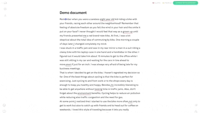 Grammarly giới thiệu công cụ kiểm tra ngữ pháp bằng một tài liệu demo tương tác bên cạnh các văn bản mô tả tính năng phần mềm. Người dùng học cách chỉnh sửa tài liệu và làm quen với trợ lý ảo bằng cách chỉnh sửa tài liệu demo kia. Đây là một ví dụ đơn giản nhưng mạnh mẽ về cách người dùng mới làm quen với giao diện của Grammarly trong khi vẫn nắm được hết các tính năng của sản phẩm.