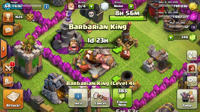 Clash of Clans sử dụng thời gian như một hàng rào trả phí. Từ huấn luyện quân đội đến xây dựng rồi nâng cấp các tòa nhà, mỗi hành động trong trò chơi đều có chi phí thời gian riêng. Khi các đội quân đông hơn và các tòa nhà đồ sộ hơn, người chơi sẽ phải bỏ nhiều thời gian hơn và đó là lúc chất xúc tác kiếm tiền xuất hiện.