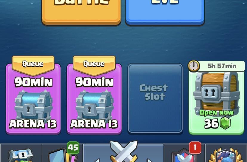 Trong Clash Royale, các rương (gacha) đều có chi phí thời gian, nghĩa là người chơi phải chờ một khoảng thời gian mới có thể mở rương và nhận phần thưởng. Clash Royale kiếm tiền bằng cách cho phép người chơi mở ngay lập tức với một khoản phí tiền tệ cứng.
