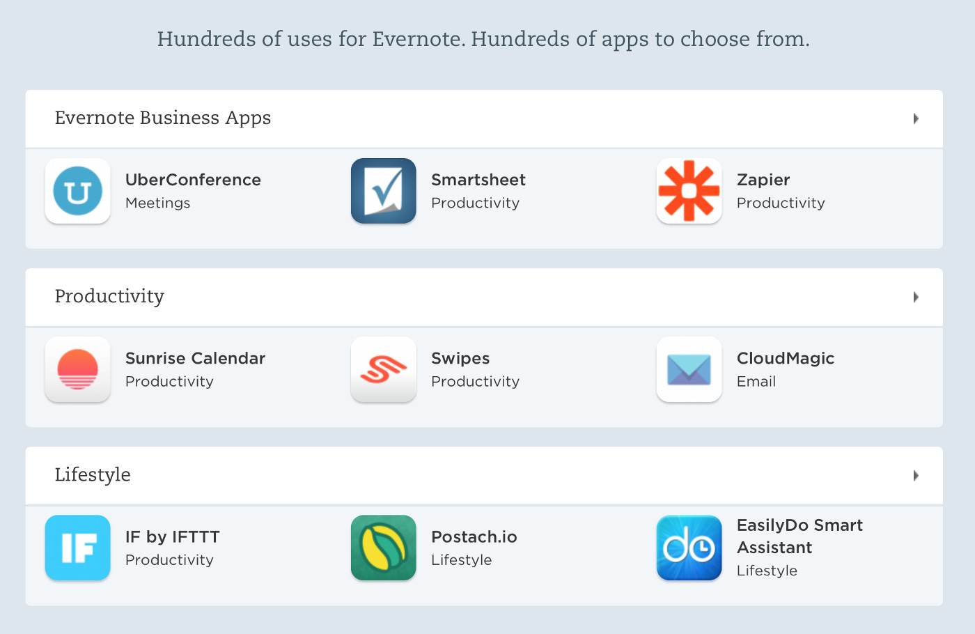 Nhưng tôi nghĩ họ có thể làm tốt hơn trong việc tích hợp tính năng trong ứng dụng của họ. Họ có thể sắp xếp các tích hợp ứng dụng của mình thành "Bộ sưu tập", nhưng tôi ước họ nói cụ thể hơn về loại khách hàng hoặc doanh nghiệp, bởi tôi thực sự không chắc "Phong cách sống" nghĩa là gì. Tôi cũng mong họ đề xuất các ứng dụng cho trường hợp sử dụng của tôi trong trải nghiệm giới thiệu.
