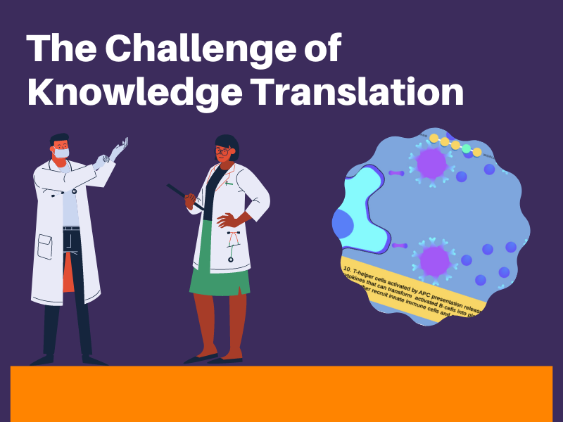 Dịch thuật kiến thức là hoạt động trình bày một nghiên cứu khoa học chi tiết và phức tạp thành một cái gì đó mà khán giả đại chúng có thể tiếp thu được. Với tư cách là Trợ lý Nghiên cứu bậc Đại học của Nhóm Trò chơi HCI, chúng tôi là một phần của dự án dịch thuật kiến thức hợp tác với Viện Công nghệ Nano Waterloo (WIN). Nhiệm vụ của chúng tôi là thiết kế một trò chơi tương tác hoặc một ứng dụng game hóa giải thích nghiên cứu của Tiến sĩ Roderick Slavcev về một loại vắc-xin COVID-19 mới. Cụ thể, chúng tôi giúp nhóm thiết kế hiểu và chuyển đổi được những nội dung học thuật sang một hình thức truyền thông mới - trong trường hợp này là một trò chơi.