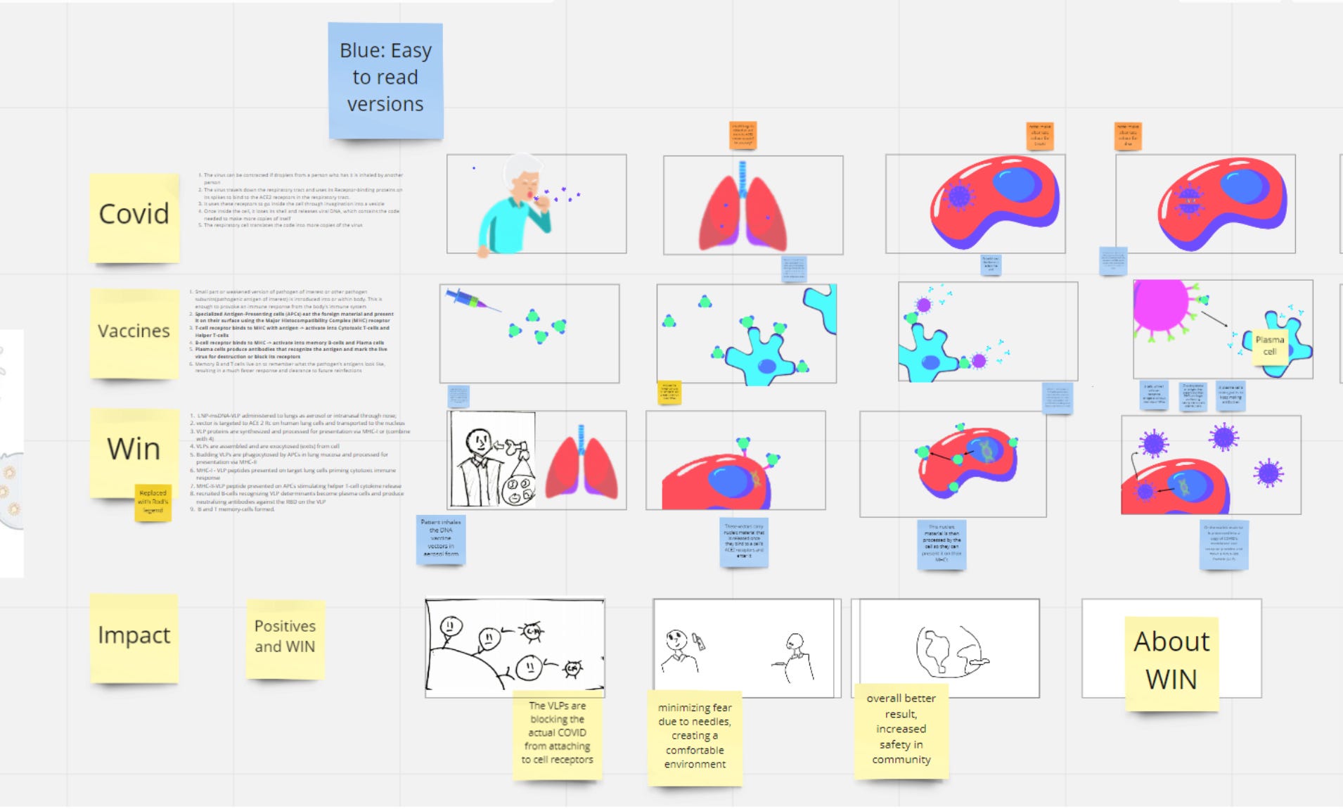 Tạo ra một trò chơi về một chủ đề phức tạp, chẳng hạn như cách hoạt động của vắc xin, là một thách thức to lớn. Chúng tôi phải cân nhắc nhiều yếu tố để đảm bảo nội dung hấp dẫn mọi đối tượng người chơi - đồng thời không được phép bỏ lỡ bất cứ ý tưởng cốt lõi nào trong nghiên cứu ban đầu. Chúng tôi phải hiểu người chơi của mình đã có bao nhiêu kiến thức nền về COVID-19, phải đề cao cảnh giác trước những thuật ngữ phức tạp mà không phải ai cũng hiểu. Khi trích xuất thông tin cho trò chơi, chúng tôi cố gắng nghĩ ra nhiều cách khác nhau sao cho tất cả mọi người đều hiểu được. Tất cả chúng tôi đều đồng ý rằng cách tốt nhất để làm điều đó là chia thông tin quan trọng thành các phần nhỏ dễ tiêu hóa.