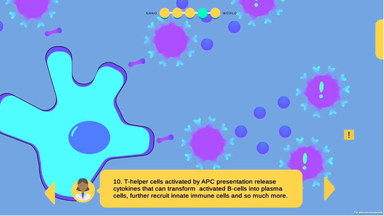 Dịch thuật kiến thức luôn là một dự án hợp tác liên ngành đồ sộ. Là sinh viên ngành Nghiên cứu Sức khỏe, dự án này cho phép chúng tôi áp dụng các kỹ năng đã học ở trường vào môi trường thực tế. Làm việc với những cá nhân thuộc các lĩnh vực khác nhau cho phép chúng tôi mở rộng tầm nhìn của mình, thấy cách game hóa được áp dụng trong các lĩnh vực như y tế và công nghệ nano.