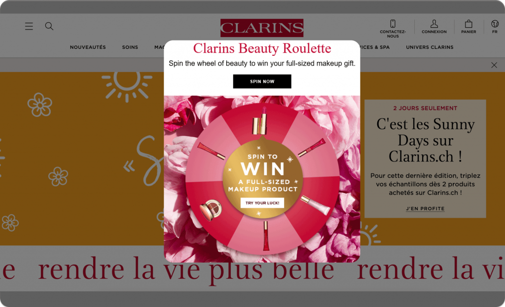 Các nhóm kỹ thuật số và tiếp thị tại Clarins nhận ra rằng Game hóa có thể là cách hiệu quả để thu hút người dùng, cá nhân hóa trải nghiệm và tăng doanh thu. Clarins đã chọn sử dụng một trò chơi kiểu bánh xe số khá giống với chương trình trò chơi truyền hình "Wheel of Fortune".