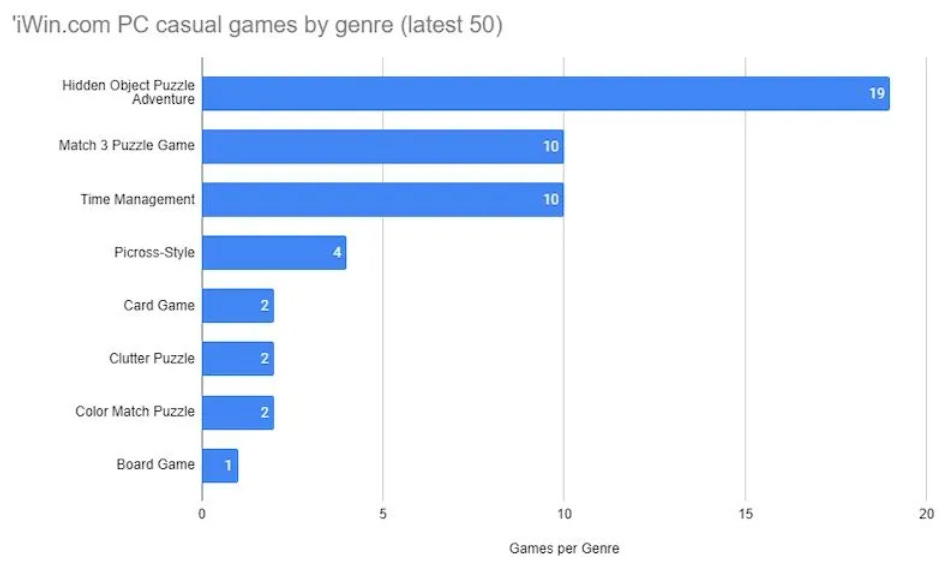 Dù không thuộc vào bất cứ thể loại cốt lõi nào trên Steam hay nằm trong top trò chơi di động hàng đầu hiện nay, các trò chơi kiểu này vẫn ăn khách nhờ việc tích hợp vô số thể loại hấp dẫn. Dưới đây là bản tin của GameDiscoverCo về thể loại của 50 trò chơi hàng đầu tính đến giữa tháng 5 năm 2022, được đăng kênh YouTube của iWin: