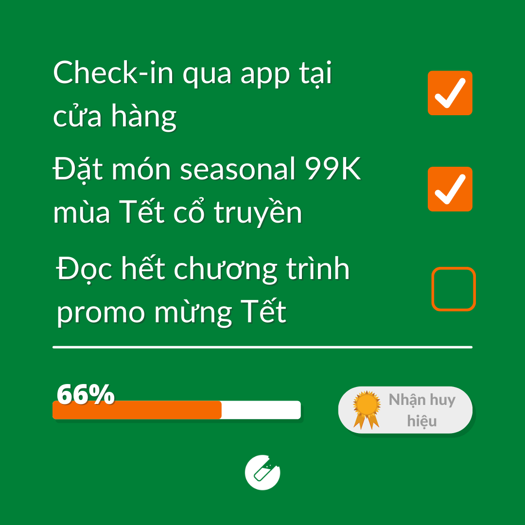 Về cơ bản, hệ thống này sẽ tặng cho KH một loại huy hiệu ảo (hoặc cũng có thể là thật luôn!) trên ứng dụng loyalty kèm với một phần thưởng là điểm thưởng tương ứng khi họ thực hiện một hay một chuỗi các tương tác với cửa hàng và/hoặc ứng dụng. Cơ chế này tận dụng động lực muốn tích lũy và phát triển (Core Drive 2) cũng như động lực muốn sở hữu nhiều huy hiệu hơn và có huy hiệu xịn hơn (Core Drive 4).