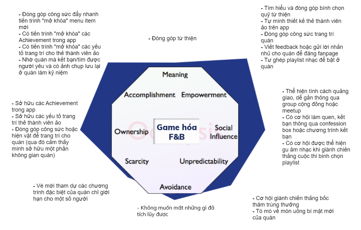 Trong dự án nghiên cứu này, Ludo Lab sẽ sử dụng công cụ mô hình Octalysis để phân tích các hoạt động Game hóa được đề xuất cũng như yếu tố động lực và hành vi của KH cà phê. Bạn có thể đọc bài viết dưới đây để tìm hiểu thêm về công cụ phân tích Game hóa này.