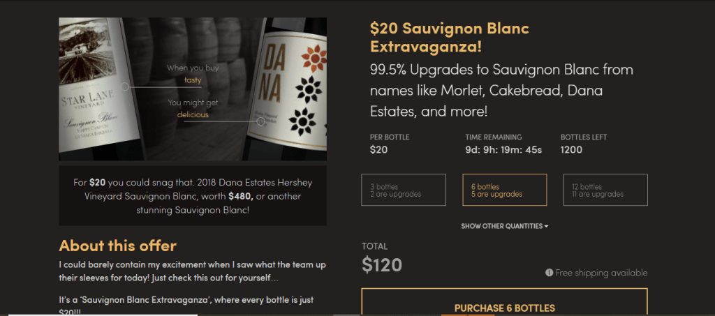 Mặt khác, một số người có thể không thích việc họ không thể chọn chính xác loại rượu họ muốn. Hầu hết các chai rượu trên nền tảng đều ở mức khoảng 30 đến 35 đô (ngoại trừ các phiên giảm giá 20 đô nhưng không thường xuyên). Những người như tôi, thường chỉ mua rượu vang trong khoảnh 5 đến 20 đô. Phí vận chuyển hơi đắt, chi phí vận chuyển mặt đất là 21 đô la cho ba chai rượu. Để nhận được giao hàng miễn phí, bạn phải đặt cùng lúc 12 chai.