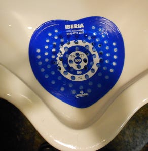 Có lẽ các sân bay đã giúp phổ biến sự đổi mới này ra quốc tế - tôi đã tìm thấy những chú ruồi ở Nhà ga số 4 của Sân bay Quốc tế John F. Kennedy ở Thành phố New York. Và gần đây là một ý tưởng tuyệt vời khác ở Buenos Aires, Argentina: