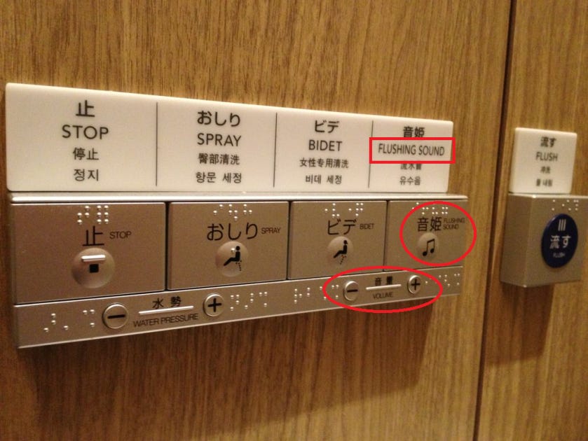 Cho đến nay, tôi đã tìm thấy công nghệ nhà vệ sinh tiên tiến nhất ở Nhật Bản tại sân bay Haneda, Tokyo. Ngoài sự sạch sẽ và mời gọi vốn có, trong nhà vệ sinh còn có một dãy nút trên tường hoặc bên cạnh bồn cầu cho phép người dùng có thể điều chỉnh vòi sen nước ấm cho các vùng cơ thể khác nhau - được tích hợp ngay trong bồn cầu.