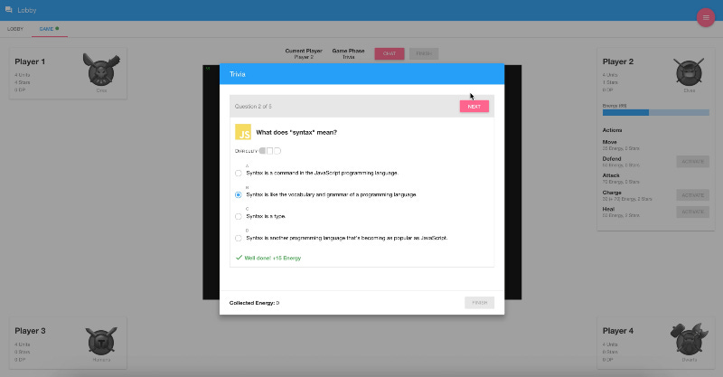 Hiện tại, chúng tôi đã triển khai và thử nghiệm một nguyên mẫu của CLEVER. Đây là một trò chơi giải đố chiến lược, chơi theo lượt trong không gian kỹ thuật số. Nguyên mẫu kết hợp một số yếu tố trò chơi như chiến đấu, cạnh tranh, phản hồi, phần thưởng (điểm, năng lượng và sao), khám phá và mất mát. Trong trò chơi, người chơi sẽ cạnh tranh với nhau trên một bản đồ kỹ thuật số, với mục tiêu duy nhất là loại bỏ tất cả quân địch trên màn hình.