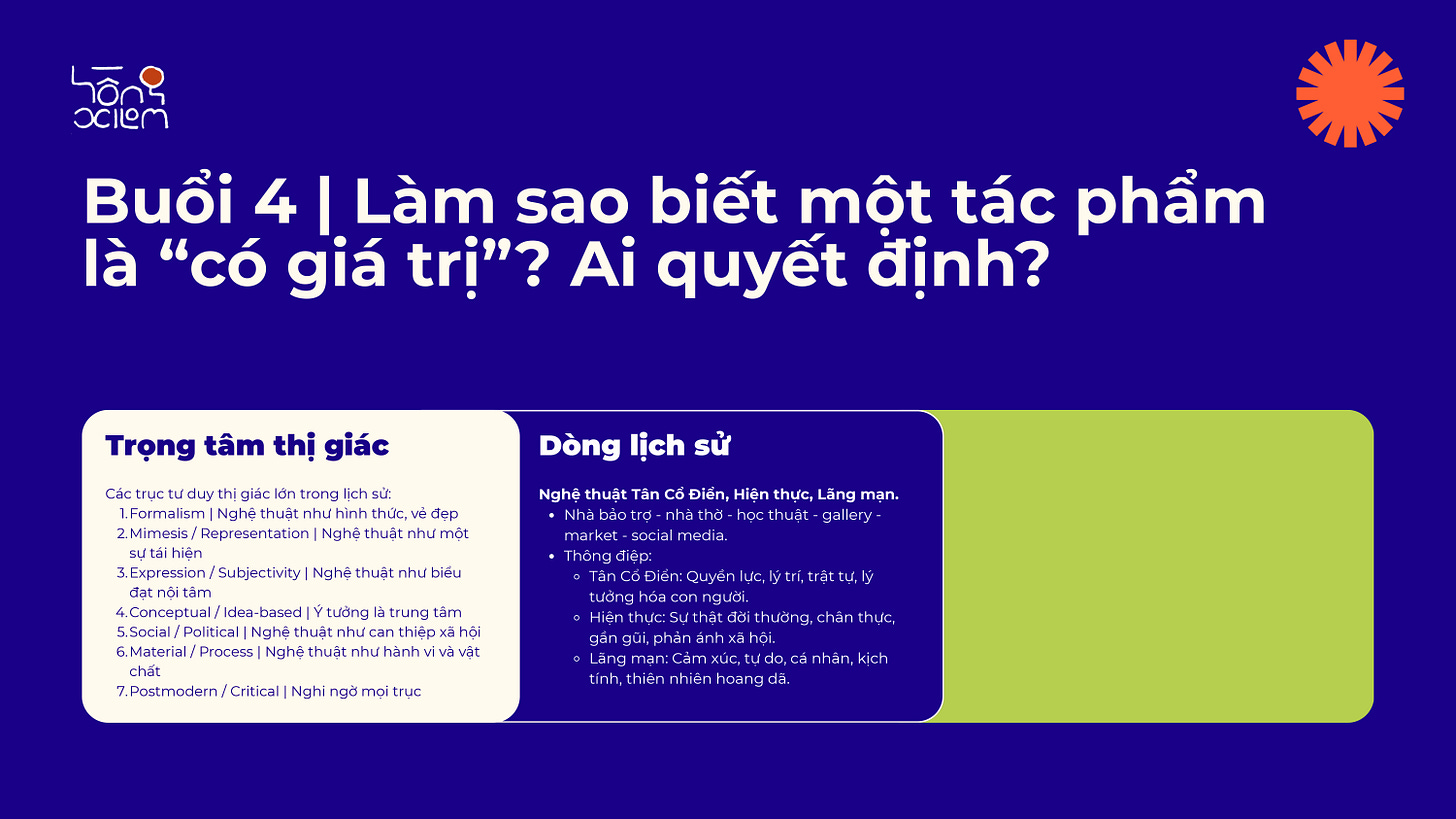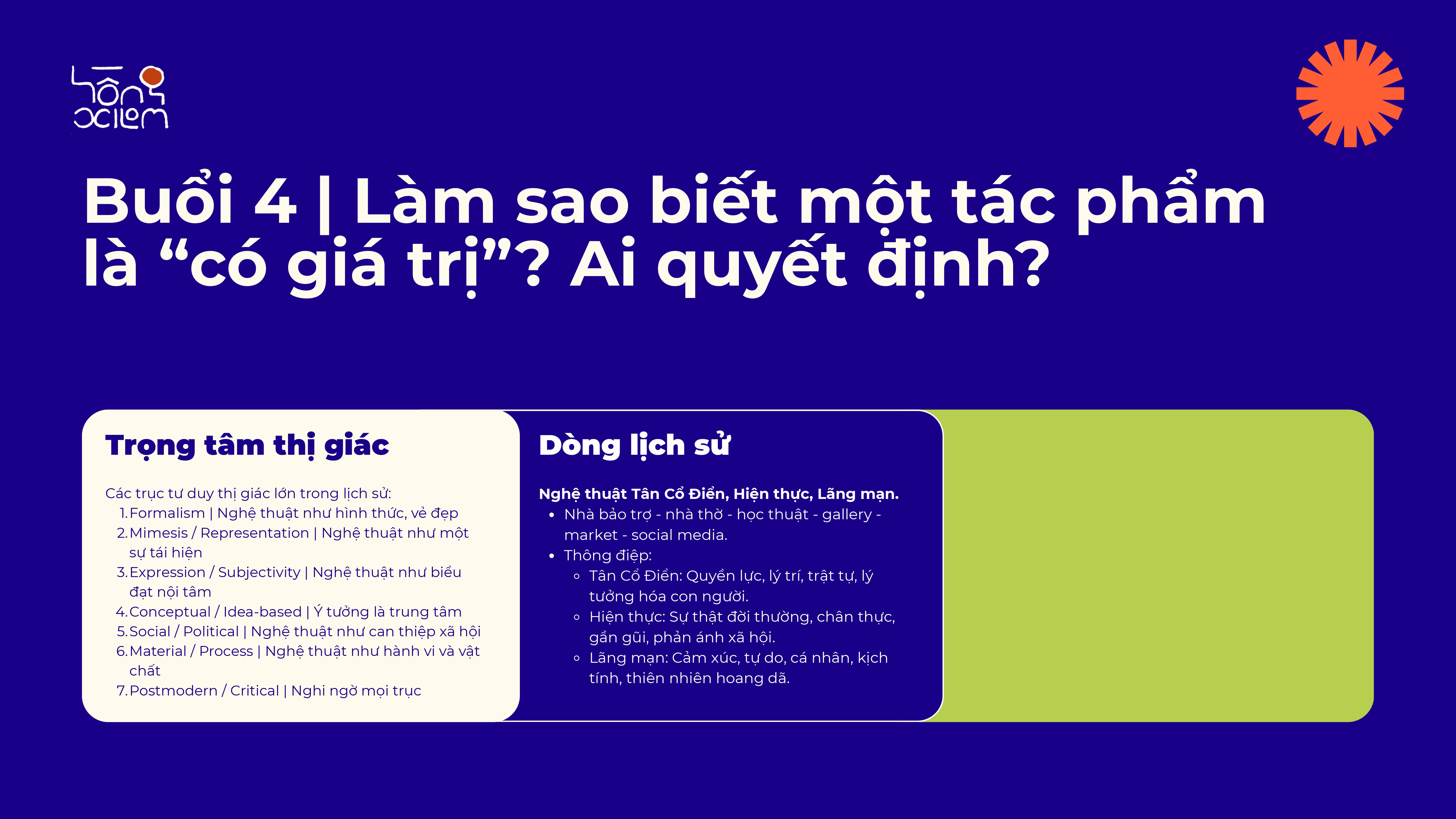 Dòng Lịch sử - Văn hóa: Học “cách hiểu” bối cảnh thời đại, triết lý và hệ hình thẩm mỹ để giải mã ý nghĩa tác phẩm.