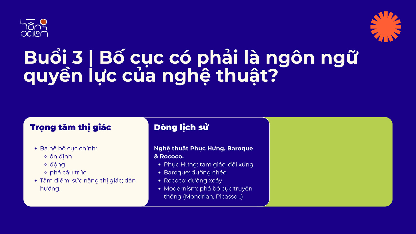 Ngôn ngữ thị giác: Hiểu sâu về các hệ thống bố cục (ổn định, động, phá cấu trúc) và cách dẫn dắt điểm nhìn để điều hướng trải nghiệm người xem.