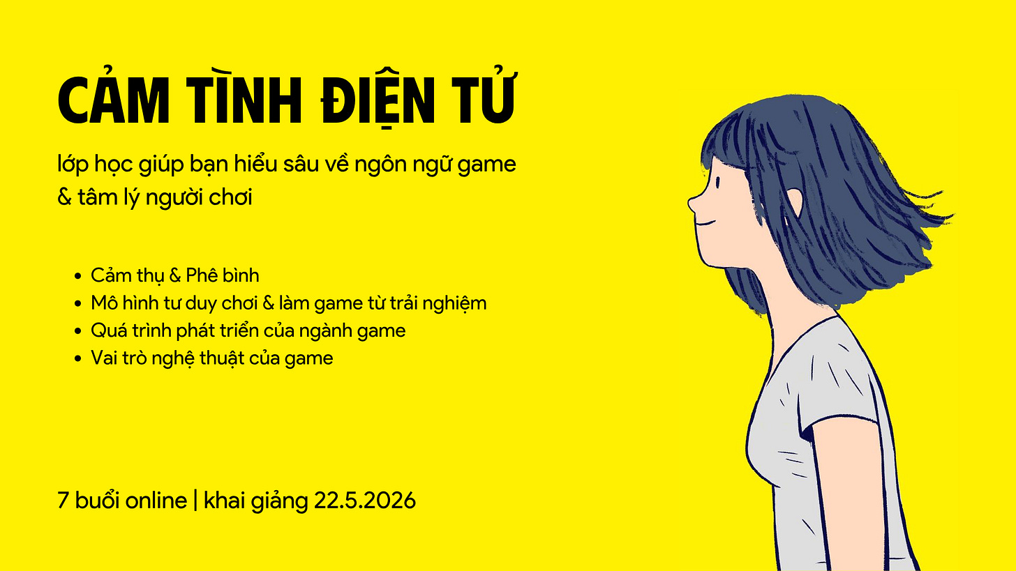 Tóm tắt: Cảm tình Điện tử là lớp học Cảm thụ Game, cung cấp một góc nhìn vừa chuyên sâu vừa toàn diện về game, từ phân tích nội tại tác phẩm cho đến tổng quan về ngành công nghiệp.