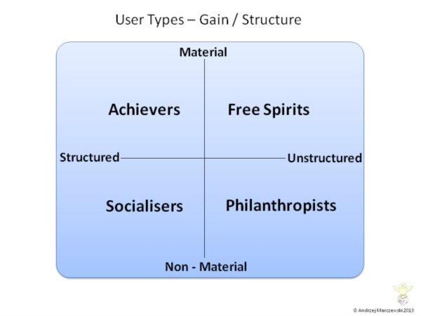 Trong bối cảnh Game hóa, Andrzej chia năm kiểu người dùng là:
