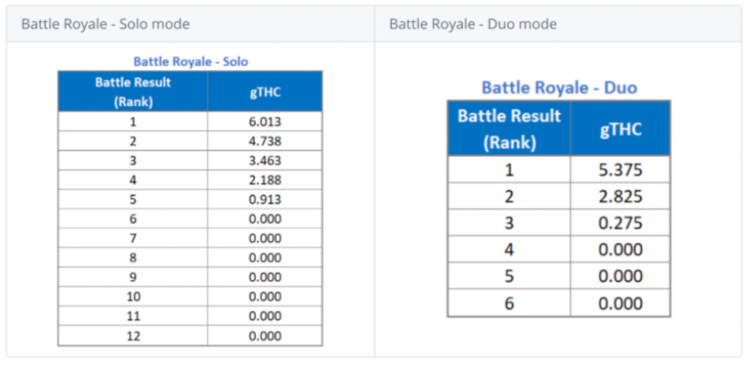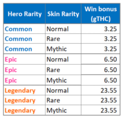 Có một số yếu tố quyết định bạn có thể giành được bao nhiêu gTHC từ các trận chiến: chế độ chơi, vị trí xếp hạng và độ hiếm NFT. Ngoài các phần thưởng được chỉ định trong bảng trên, bạn còn nhận được phần thưởng dựa trên độ hiếm của NFT.
