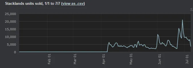 Đây là biểu đồ bán hàng Stacklands kể từ khi ra mắt vào tháng 4:
