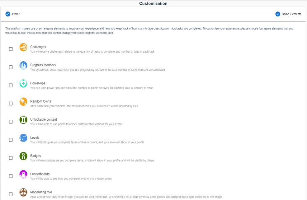 Khi thiết kế một hệ thống được cá nhân hóa, việc bao gồm một vài yếu tố thiết kế mang tính trò chơi để thỏa mãn người dùng bình thường là chưa đủ. Chúng ta cần các yếu tố thiết kế khác nhau để một trong số các yếu tố này có thể hấp dẫn đối với từng loại người dùng. Tiếp theo, nhà thiết kế cần bao gồm một số cơ chế có thể điều chỉnh theo sở thích của người dùng. Cụ thể, chúng tôi đưa vào các yếu tố khác nhau để thu hút những người dùng khác nhau, sau đó cho phép người dùng chỉ tương tác với những yếu tố họ thích còn bỏ qua những yếu tố khác. Điều đó tốt hơn nhiều so với việc chỉ bao gồm một vài yếu tố và chỉ làm hài lòng một vài người dùng. Tuy nhiên, một hệ thống có quá nhiều yếu tố có thể gây choáng hoặc làm mất tập trung. Sẽ hữu ích nếu bạn cho phép người dùng kích hoạt các yếu tố mà họ thích và vô hiệu hóa các yếu tố khác.