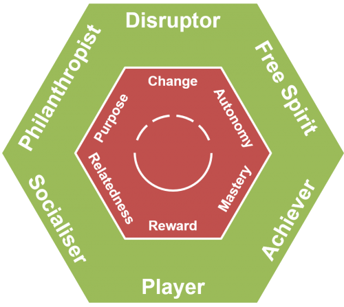 Để bổ sung các yếu tố có khả năng thu hút những người dùng khác nhau, tôi khuyên bạn nên tham khảo bảng phân loại các yếu tố thiết kế thú vị mà tôi đã xuất bản như một phần trong nghiên cứu của mình. Nó bao gồm danh sách 49 yếu tố thiết kế thú vị được phân loại thành tám nhóm được tổ chức thành ba loại: Động lực cá nhân (hòa mình và tiến bộ), Động lực bên ngoài (rủi ro/phần thưởng, tùy chỉnh và khuyến khích) và Động lực xã hội (xã hội hóa, hỗ trợ và lòng vị tha).