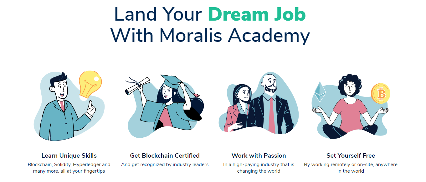 Nếu ước mơ của bạn là nhanh chóng trở thành một nhà phát triển Web3, chúng tôi khuyên bạn nên cân nhắc ghi danh vào Học viện Moralis. Ở đó, bạn sẽ truy cập vào các khóa học phát triển blockchain hàng đầu, có được một cộng đồng tiến bộ và sự giúp đỡ nhiệt tình của nhiều cố vấn chuyên gia nổi tiếng.