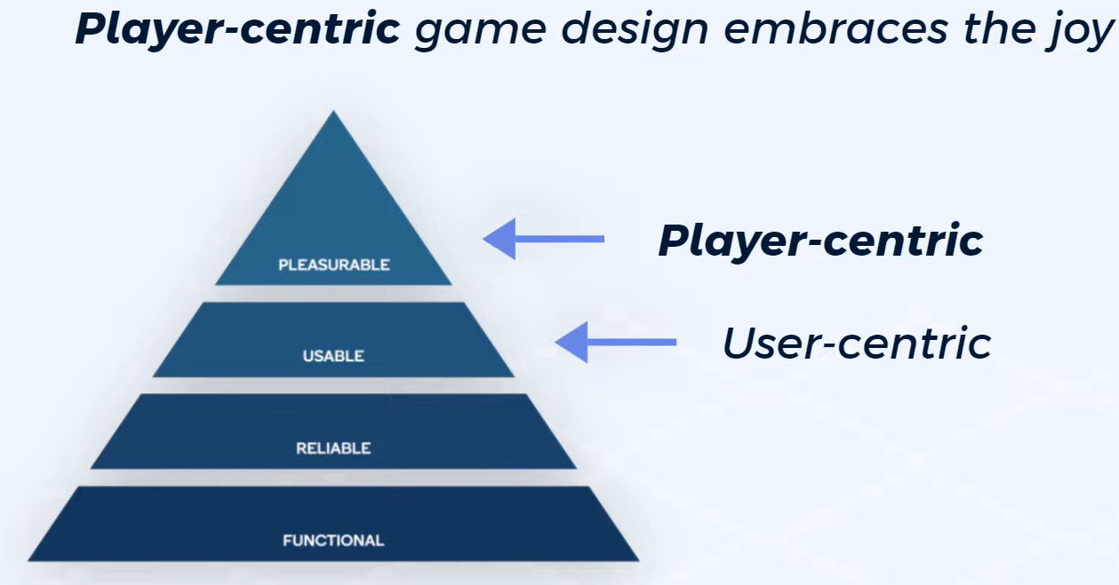Phần mềm tốt phải lấy người dùng làm trung tâm. Trò chơi thì phải tiến xa hơn nữa. Trọng tâm của trò chơi là mang lại niềm vui cho người chơi - nghĩa là phải lấy người chơi làm trung tâm: