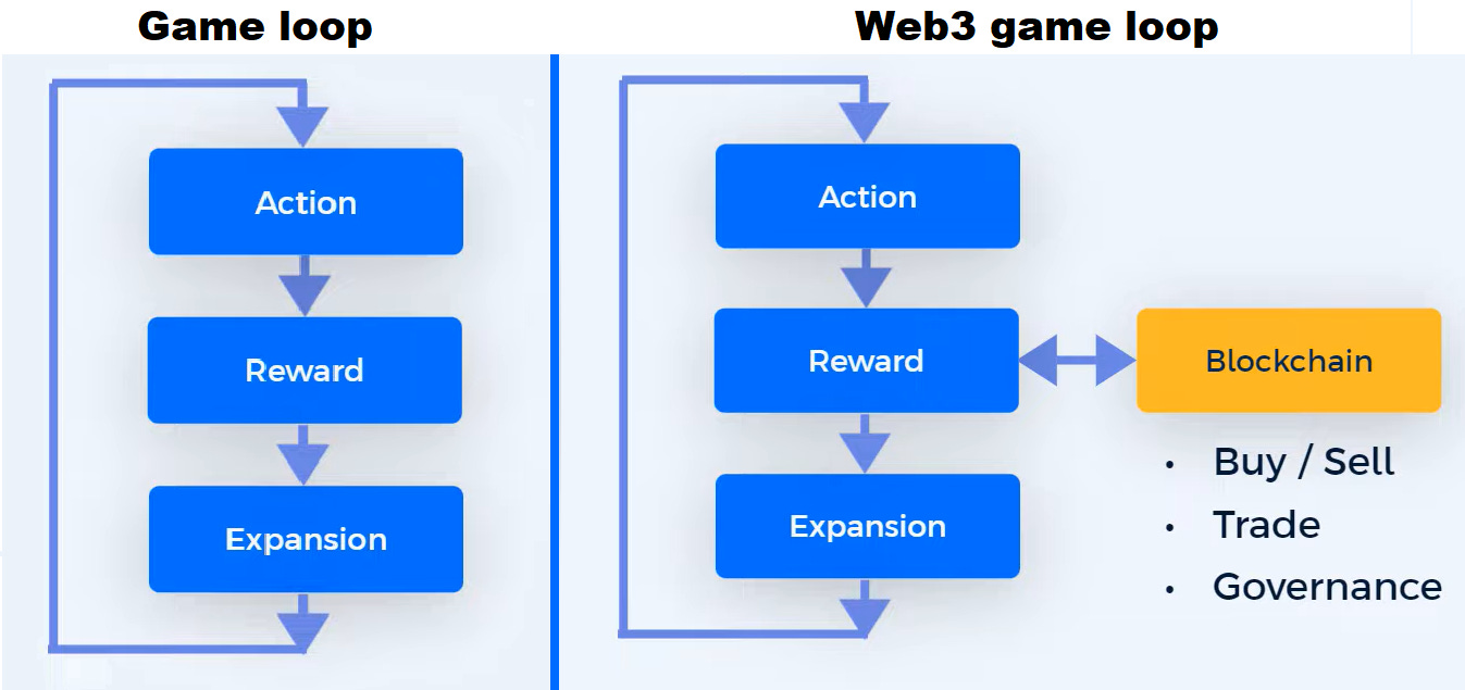Khi thiết kế trò chơi Web3, tất cả các vòng lặp kể trên đều đóng một vai trò quan trọng. Nhưng thường vòng lặp meta sẽ được chú ý đến nhiều hơn. Hơn nữa, trong Web3, chúng tôi còn ghi nhận được sự mở rộng bổ sung của một vòng lặp điển hình: