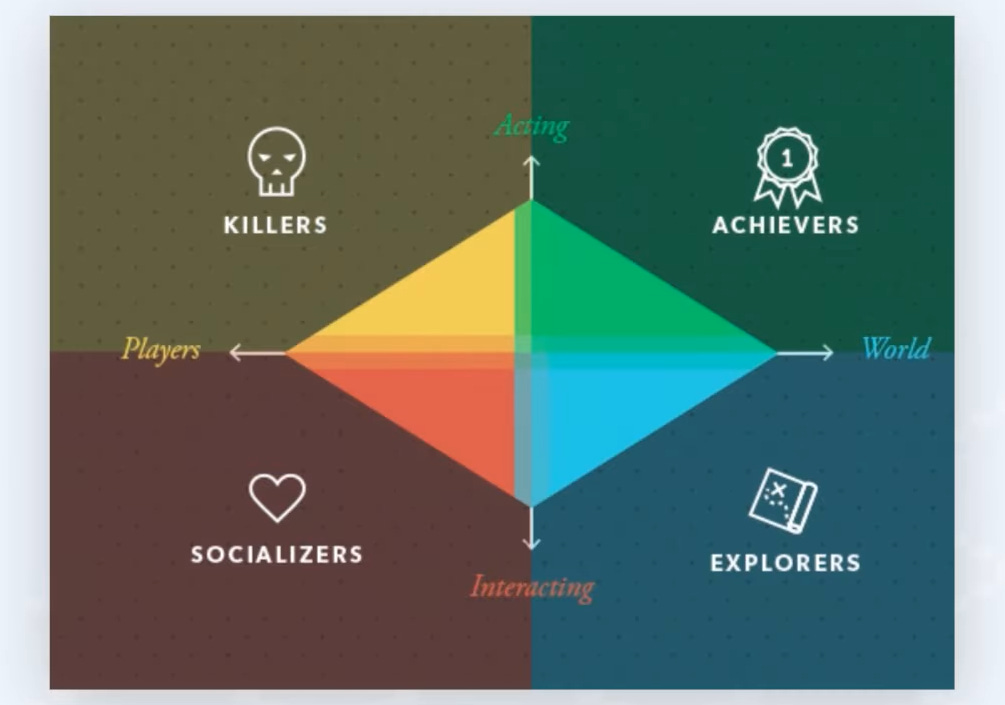 Để hiểu được người chơi yêu thích cái gì, bạn cần xem xét tính cách của người chơi. Hình ảnh dưới đây minh họa bốn kiểu người chơi thường gặp trong trò chơi xã hội hoặc trò chơi nhiều người chơi: